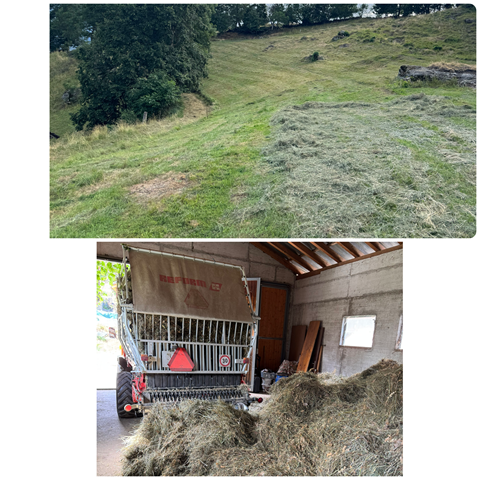Ab dem 15. Juli haben wir die Biodiversitätsförderflächen (BFF) in der Bergzone 4 gemäht. Das Heuen auf der Egga erfordert sehr viel Handarbeit und wir sind den vielen Helferinnen und Helfer für ihre Hilfe und Unterstützung sehr dankbar.